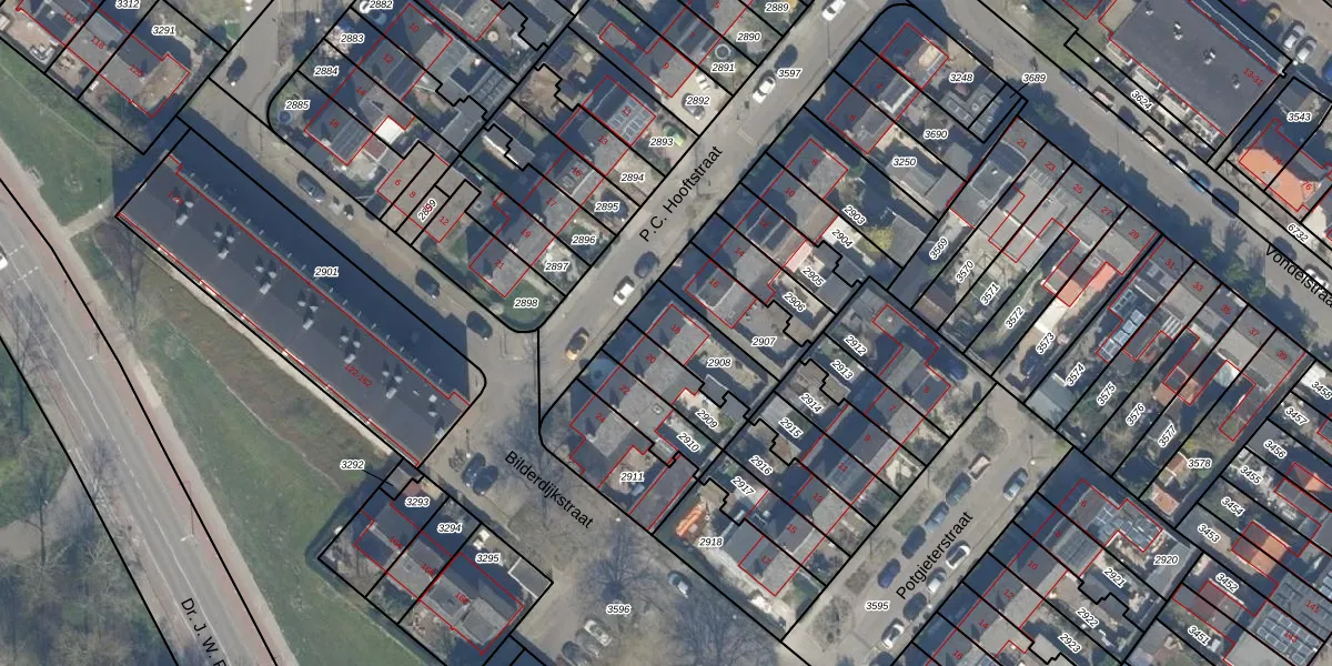 Het perceel waarop P.C. Hooftstraat 18 staat heeft een oppervlakte van 179 m². Dit is een middelgroot perceel. De perceeloppervlakte wordt geregistreerd door het Kadaster. Gedetailleerde informatie over de maten van dit perceel kunt u vinden in het rapport Kadastrale kaart met maatvoering van P.C. Hooftstraat 18.