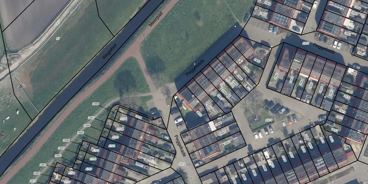 Gebruik de zoekbalk of klik op een perceel voor informatie over de adressen binnen dit perceel.