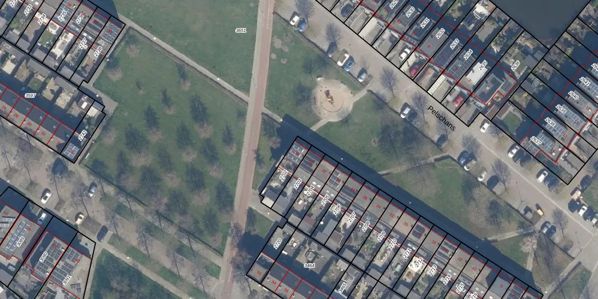 Gebruik de zoekbalk of klik op een perceel voor informatie over de adressen binnen dit perceel.
