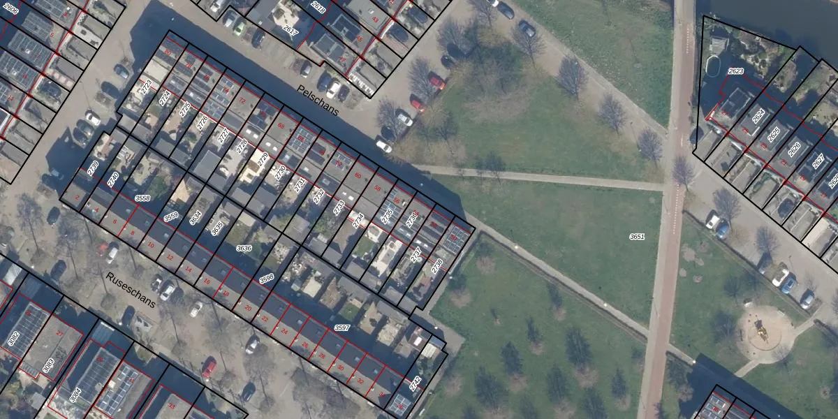 Gebruik de zoekbalk of klik op een perceel voor informatie over de adressen binnen dit perceel.
