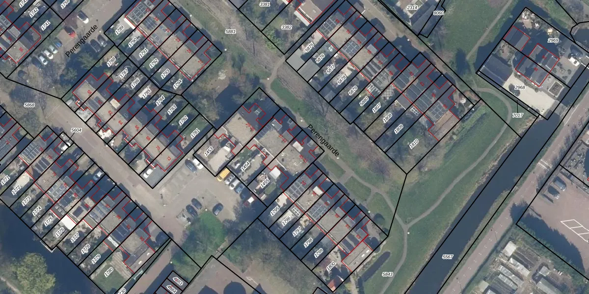 Perengaarde 45 is gelegen op kadastraal perceel ZWD01B1455. Deze kadastrale aanduiding is uniek en wordt gebruikt door het Kadaster om eigendomsrechten en andere zakelijke rechten vast te leggen. Het perceel maakt onderdeel uit van de kadastrale gemeente Zegwaard.