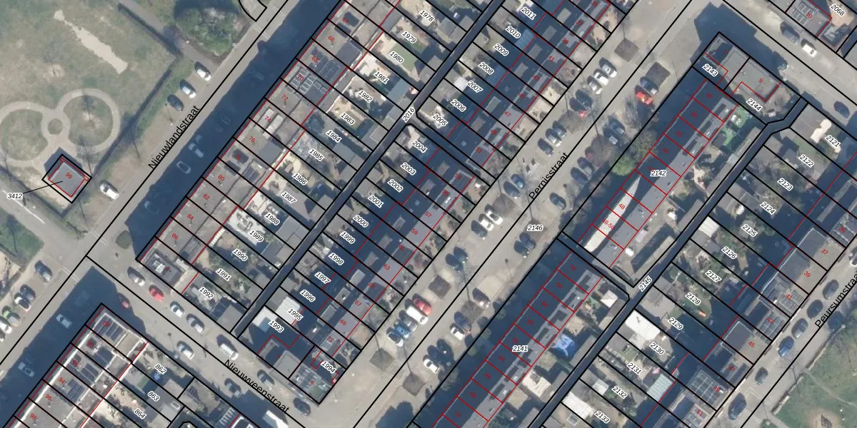 Gebruik de zoekbalk of klik op een perceel voor informatie over de adressen binnen dit perceel.