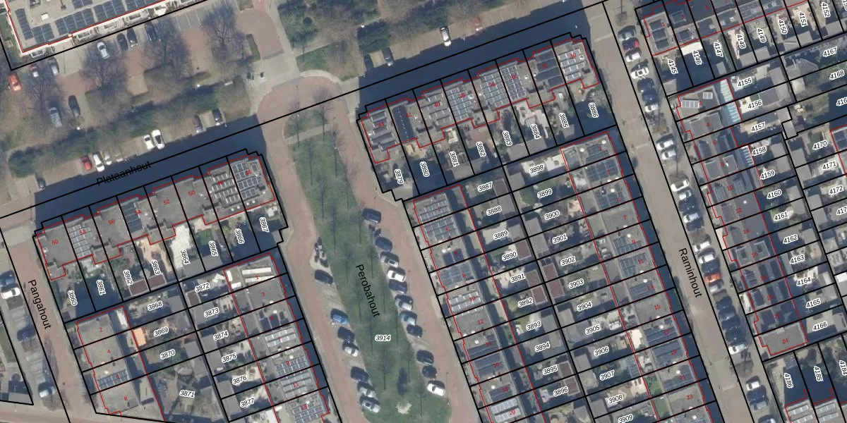 Het perceel waarop Perobahout 2 staat heeft een oppervlakte van 165 m². Dit is een middelgroot perceel. De perceeloppervlakte wordt geregistreerd door het Kadaster. Gedetailleerde informatie over de maten van dit perceel kunt u vinden in het rapport Kadastrale kaart met maatvoering van Perobahout 2.