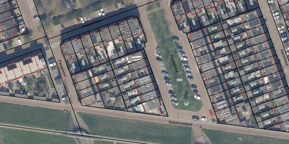 Gebruik de zoekbalk of klik op een perceel voor informatie over de adressen binnen dit perceel.
