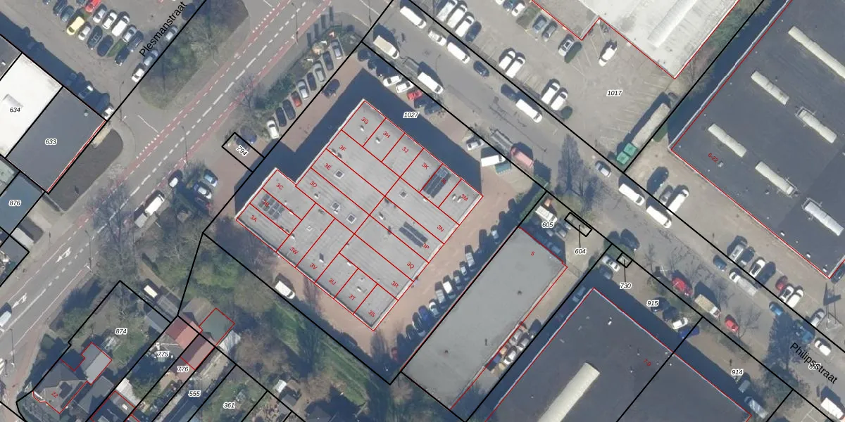 Het perceel waarop Philipsstraat 3-N staat heeft een oppervlakte van 3354 m². Dit is een zeer groot perceel. De perceeloppervlakte wordt geregistreerd door het Kadaster. Gedetailleerde informatie over de maten van dit perceel kunt u vinden in het rapport Kadastrale kaart met maatvoering van Philipsstraat 3-N.