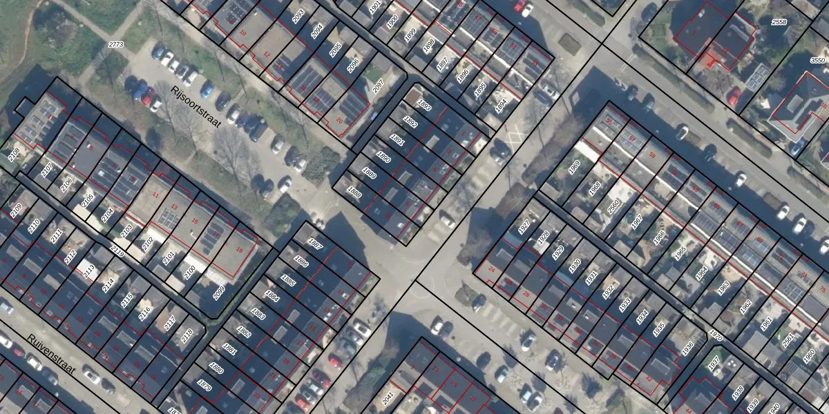 Gebruik de zoekbalk of klik op een perceel voor informatie over de adressen binnen dit perceel.