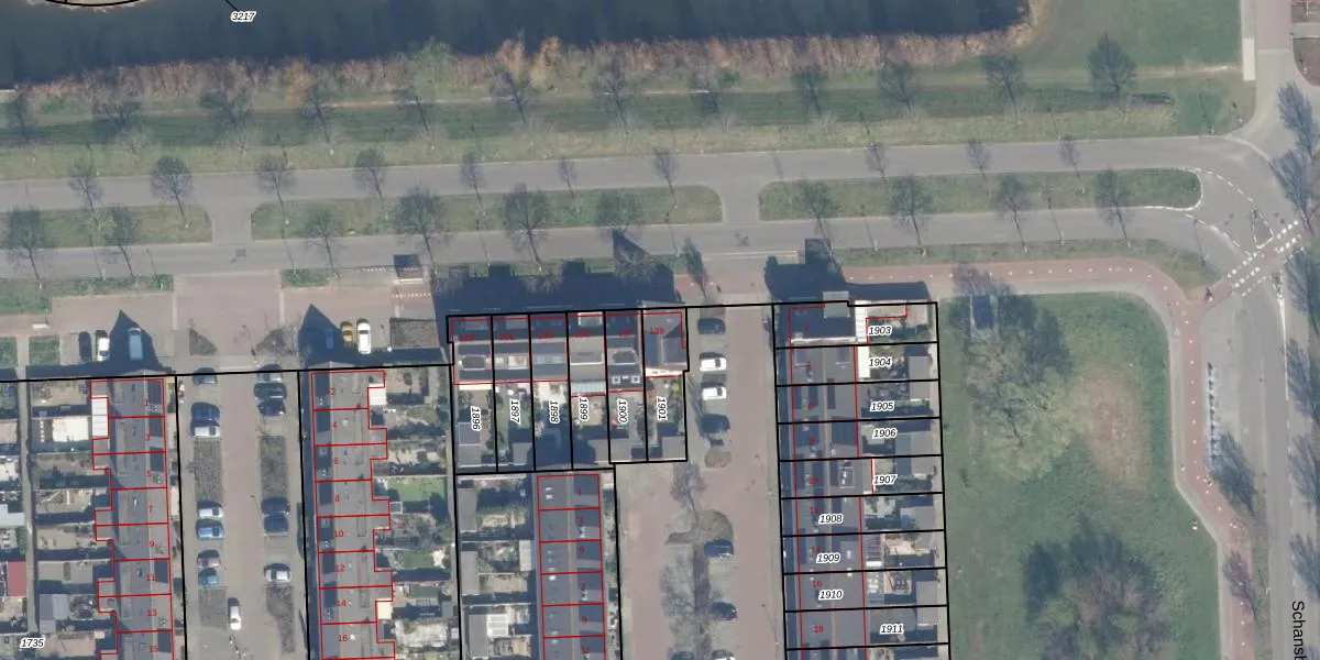 Gebruik de zoekbalk of klik op een perceel voor informatie over de adressen binnen dit perceel.