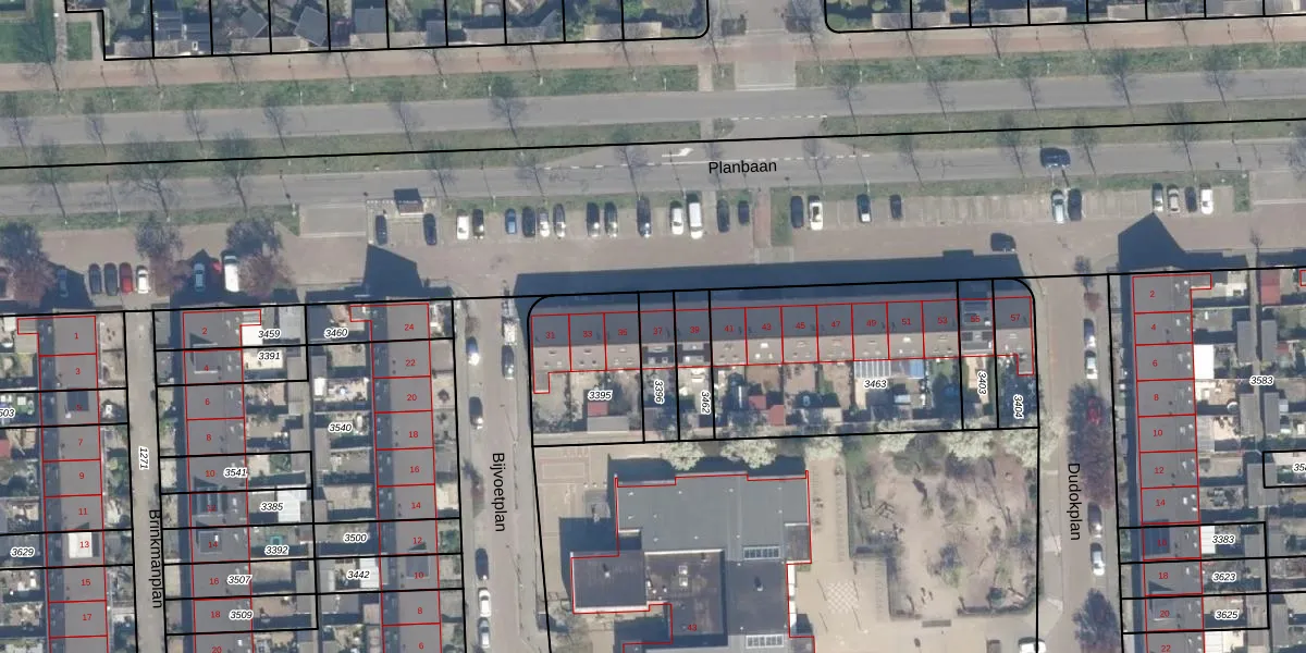 Gebruik de zoekbalk of klik op een perceel voor informatie over de adressen binnen dit perceel.