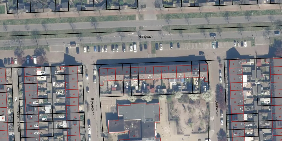 Het perceel waarop Planbaan 41 staat heeft een oppervlakte van 873 m². Dit is een groot perceel. De perceeloppervlakte wordt geregistreerd door het Kadaster. Gedetailleerde informatie over de maten van dit perceel kunt u vinden in het rapport Kadastrale kaart met maatvoering van Planbaan 41.