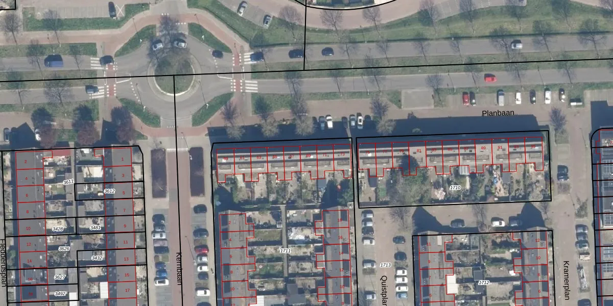 Het perceel waarop Planbaan 69 staat heeft een oppervlakte van 3360 m². Dit is een zeer groot perceel. De perceeloppervlakte wordt geregistreerd door het Kadaster. Gedetailleerde informatie over de maten van dit perceel kunt u vinden in het rapport Kadastrale kaart met maatvoering van Planbaan 69.