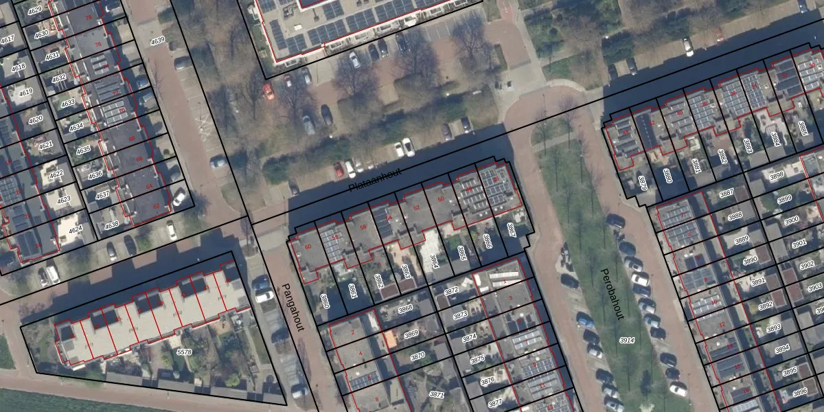 Gebruik de zoekbalk of klik op een perceel voor informatie over de adressen binnen dit perceel.