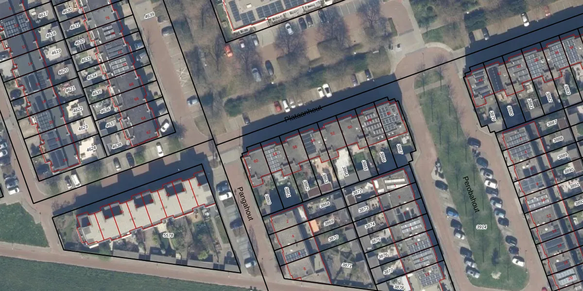 Gebruik de zoekbalk of klik op een perceel voor informatie over de adressen binnen dit perceel.