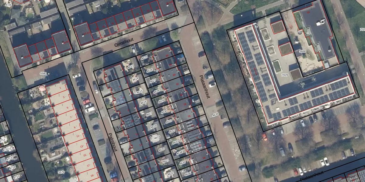 Gebruik de zoekbalk of klik op een perceel voor informatie over de adressen binnen dit perceel.
