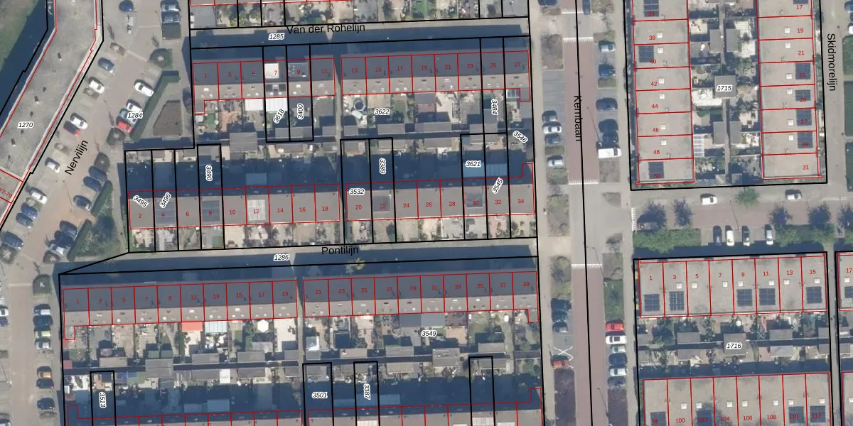 Het perceel waarop Pontilijn 26 staat heeft een oppervlakte van 2515 m². Dit is een zeer groot perceel. De perceeloppervlakte wordt geregistreerd door het Kadaster. Gedetailleerde informatie over de maten van dit perceel kunt u vinden in het rapport Kadastrale kaart met maatvoering van Pontilijn 26.