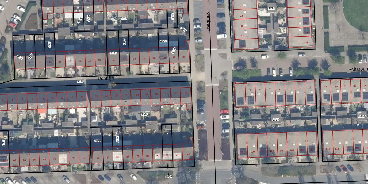 Het perceel waarop Pontilijn 39 staat heeft een oppervlakte van 4696 m². Dit is een zeer groot perceel. De perceeloppervlakte wordt geregistreerd door het Kadaster. Gedetailleerde informatie over de maten van dit perceel kunt u vinden in het rapport Kadastrale kaart met maatvoering van Pontilijn 39.