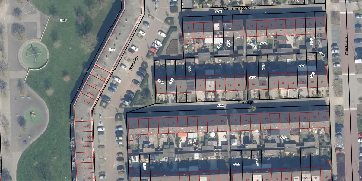 Het perceel waarop Pontilijn 6 staat heeft een oppervlakte van 2515 m². Dit is een zeer groot perceel. De perceeloppervlakte wordt geregistreerd door het Kadaster. Gedetailleerde informatie over de maten van dit perceel kunt u vinden in het rapport Kadastrale kaart met maatvoering van Pontilijn 6.