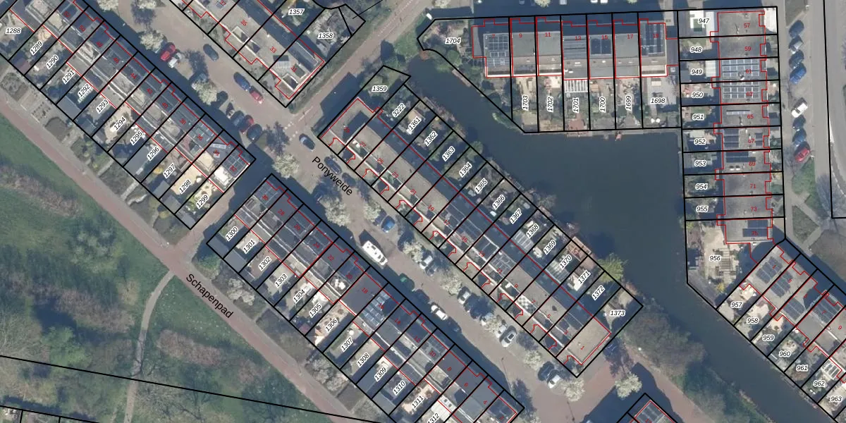 Ponyweide 19 is gelegen op kadastraal perceel ZWD01A1364. Deze kadastrale aanduiding is uniek en wordt gebruikt door het Kadaster om eigendomsrechten en andere zakelijke rechten vast te leggen. Het perceel maakt onderdeel uit van de kadastrale gemeente Zegwaard.