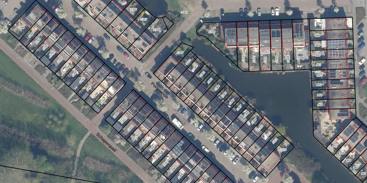 Ponyweide 23 is gelegen op kadastraal perceel ZWD01A1362. Deze kadastrale aanduiding is uniek en wordt gebruikt door het Kadaster om eigendomsrechten en andere zakelijke rechten vast te leggen. Het perceel maakt onderdeel uit van de kadastrale gemeente Zegwaard.