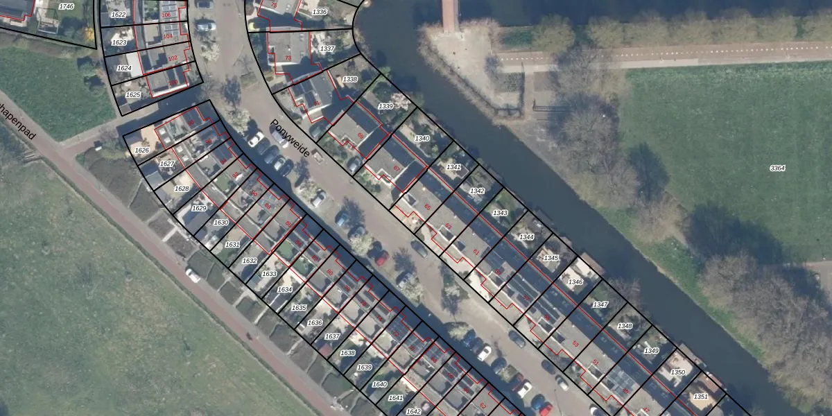 Het perceel waarop Ponyweide 65 staat heeft een oppervlakte van 190 m². Dit is een middelgroot perceel. De perceeloppervlakte wordt geregistreerd door het Kadaster. Gedetailleerde informatie over de maten van dit perceel kunt u vinden in het rapport Kadastrale kaart met maatvoering van Ponyweide 65.
