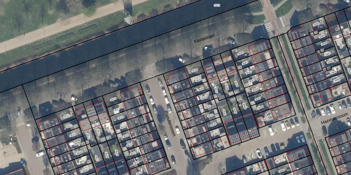 Gebruik de zoekbalk of klik op een perceel voor informatie over de adressen binnen dit perceel.