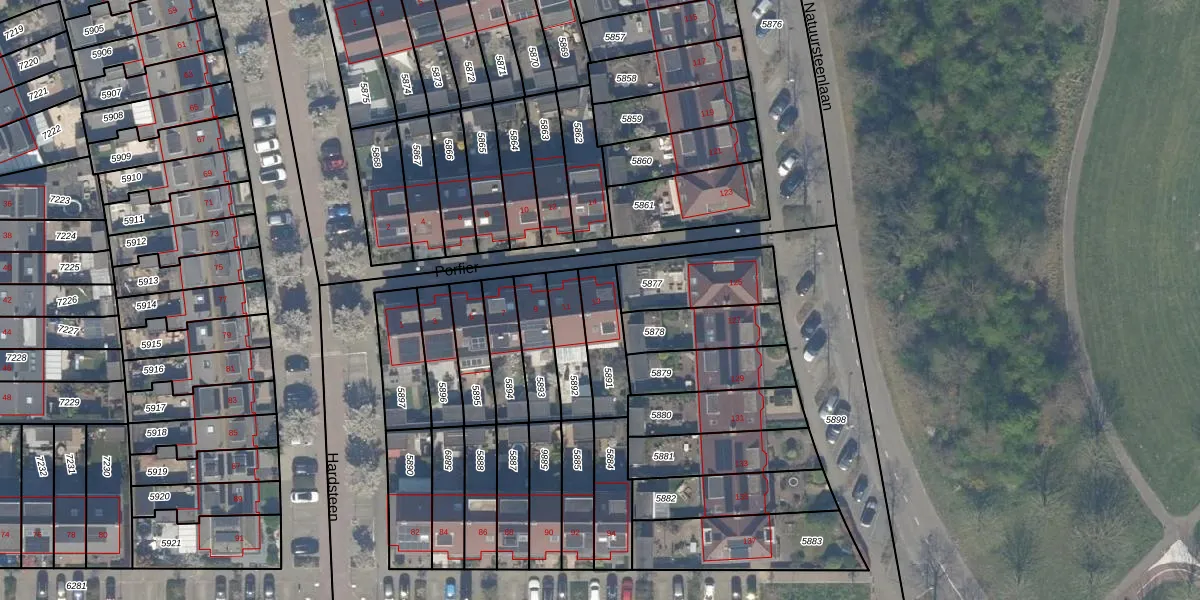 Het perceel waarop Porfier 13 staat heeft een oppervlakte van 159 m². Dit is een middelgroot perceel. De perceeloppervlakte wordt geregistreerd door het Kadaster. Gedetailleerde informatie over de maten van dit perceel kunt u vinden in het rapport Kadastrale kaart met maatvoering van Porfier 13.