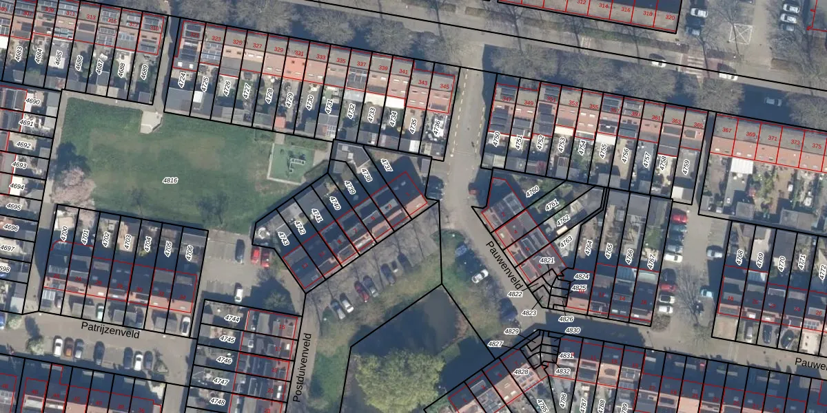 Gebruik de zoekbalk of klik op een perceel voor informatie over de adressen binnen dit perceel.
