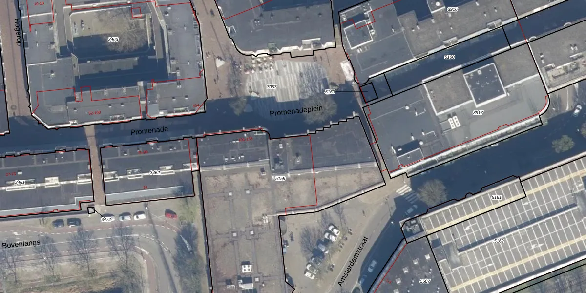 Het perceel waarop Promenadeplein 131 staat heeft een oppervlakte van 2455 m². Dit is een zeer groot perceel. De perceeloppervlakte wordt geregistreerd door het Kadaster. Gedetailleerde informatie over de maten van dit perceel kunt u vinden in het rapport Kadastrale kaart met maatvoering van Promenadeplein 131.
