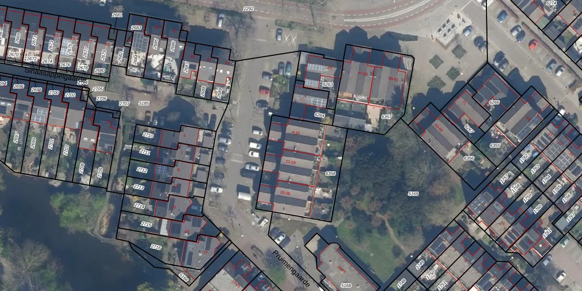 Het perceel waarop Pruimengaarde 10 staat heeft een oppervlakte van 861 m². Dit is een groot perceel. De perceeloppervlakte wordt geregistreerd door het Kadaster. Gedetailleerde informatie over de maten van dit perceel kunt u vinden in het rapport Kadastrale kaart met maatvoering van Pruimengaarde 10.
