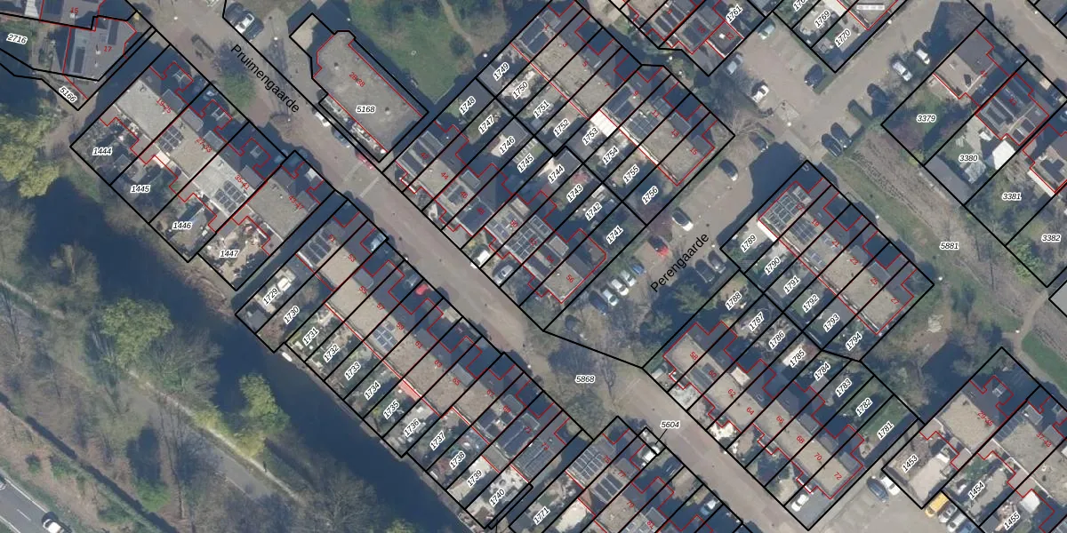 Het perceel waarop Pruimengaarde 54 staat heeft een oppervlakte van 142 m². Dit is een middelgroot perceel. De perceeloppervlakte wordt geregistreerd door het Kadaster. Gedetailleerde informatie over de maten van dit perceel kunt u vinden in het rapport Kadastrale kaart met maatvoering van Pruimengaarde 54.
