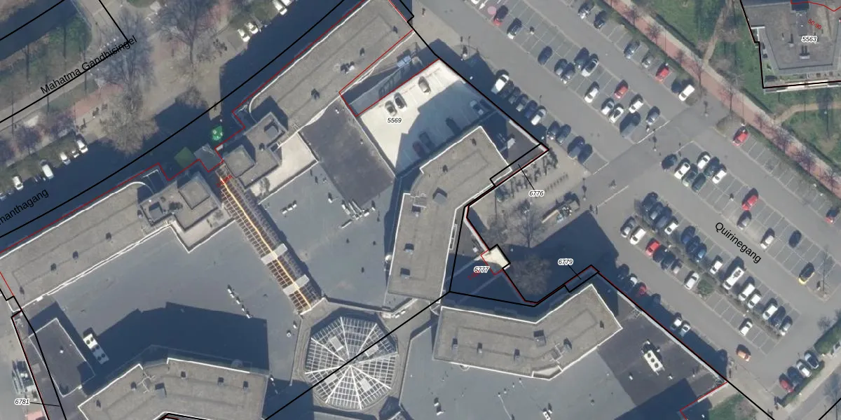 Het perceel waarop Quirinegang 165 staat heeft een oppervlakte van 7695 m². Dit is een zeer groot perceel. De perceeloppervlakte wordt geregistreerd door het Kadaster. Gedetailleerde informatie over de maten van dit perceel kunt u vinden in het rapport Kadastrale kaart met maatvoering van Quirinegang 165.