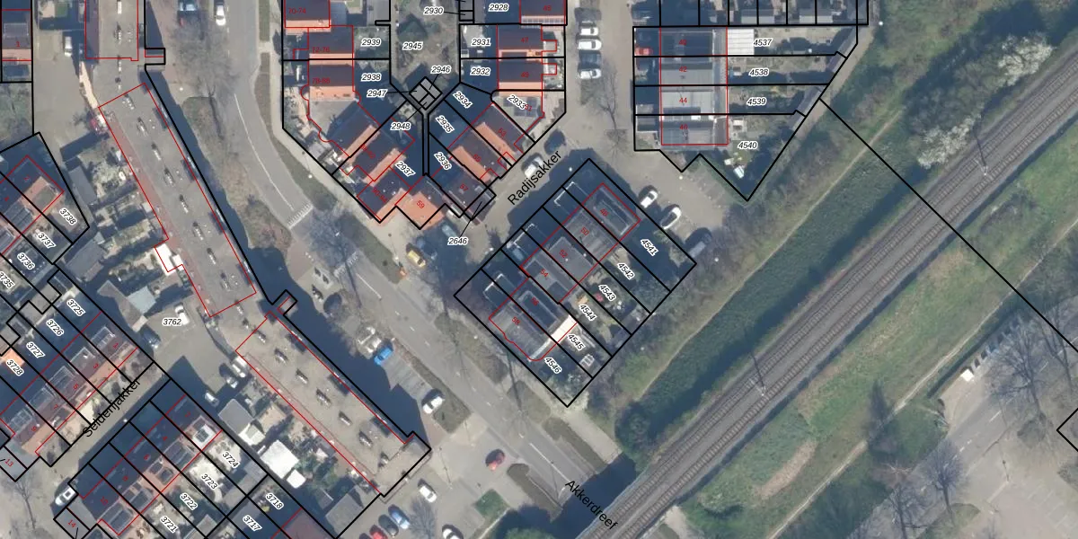Radijsakker 54 is gelegen op kadastraal perceel ZWD01B4544. Deze kadastrale aanduiding is uniek en wordt gebruikt door het Kadaster om eigendomsrechten en andere zakelijke rechten vast te leggen. Het perceel maakt onderdeel uit van de kadastrale gemeente Zegwaard.