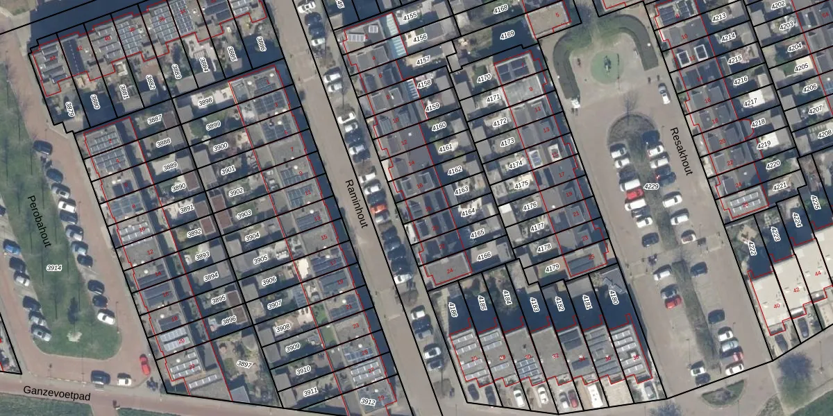 Gebruik de zoekbalk of klik op een perceel voor informatie over de adressen binnen dit perceel.