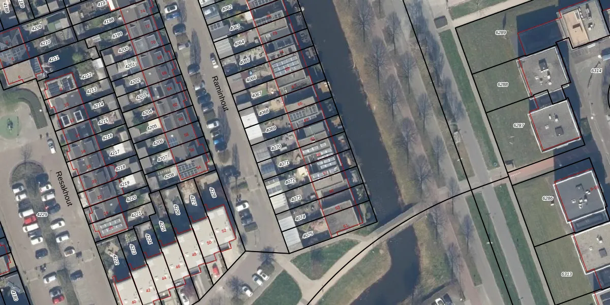 Het perceel waarop Raminhout 59 staat heeft een oppervlakte van 184 m². Dit is een middelgroot perceel. De perceeloppervlakte wordt geregistreerd door het Kadaster. Gedetailleerde informatie over de maten van dit perceel kunt u vinden in het rapport Kadastrale kaart met maatvoering van Raminhout 59.