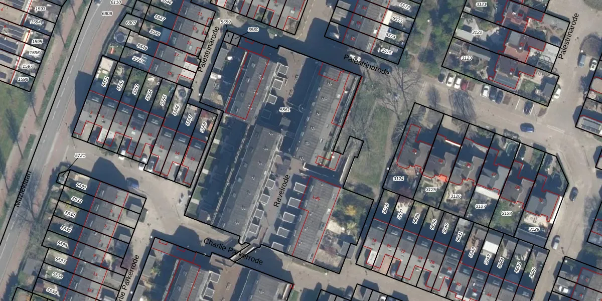 Het perceel waarop Ravelrode 40 staat heeft een oppervlakte van 3275 m². Dit is een zeer groot perceel. De perceeloppervlakte wordt geregistreerd door het Kadaster. Gedetailleerde informatie over de maten van dit perceel kunt u vinden in het rapport Kadastrale kaart met maatvoering van Ravelrode 40.
