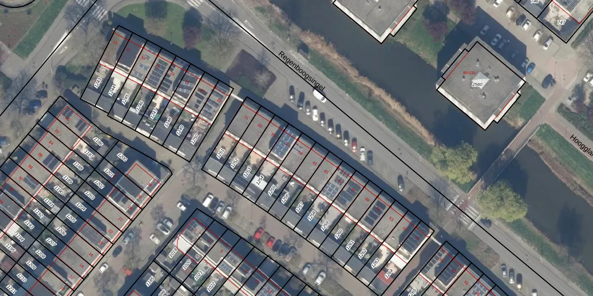 Regenboogsingel 39 is gelegen op kadastraal perceel ZWD01D1255. Deze kadastrale aanduiding is uniek en wordt gebruikt door het Kadaster om eigendomsrechten en andere zakelijke rechten vast te leggen. Het perceel maakt onderdeel uit van de kadastrale gemeente Zegwaard.