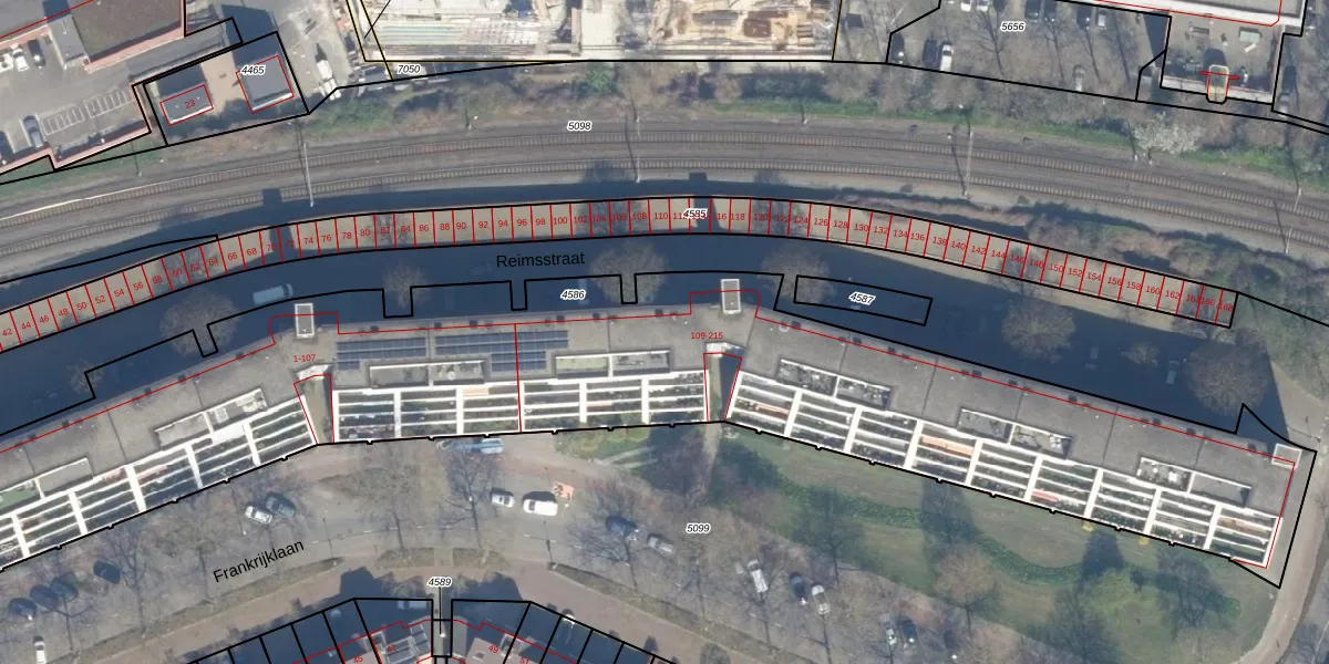 Het perceel waarop Reimsstraat 109 staat heeft een oppervlakte van 4890 m². Dit is een zeer groot perceel. De perceeloppervlakte wordt geregistreerd door het Kadaster. Gedetailleerde informatie over de maten van dit perceel kunt u vinden in het rapport Kadastrale kaart met maatvoering van Reimsstraat 109.