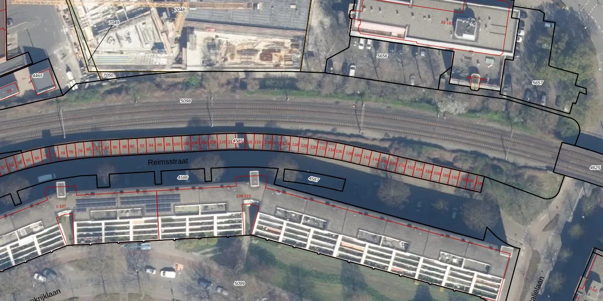 Het perceel waarop Reimsstraat 128 staat heeft een oppervlakte van 1230 m². Dit is een zeer groot perceel. De perceeloppervlakte wordt geregistreerd door het Kadaster. Gedetailleerde informatie over de maten van dit perceel kunt u vinden in het rapport Kadastrale kaart met maatvoering van Reimsstraat 128.