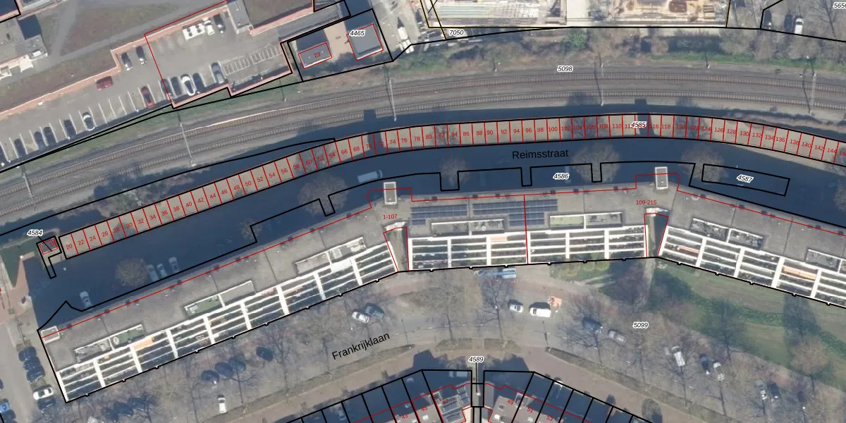 Het perceel waarop Reimsstraat 19 staat heeft een oppervlakte van 4890 m². Dit is een zeer groot perceel. De perceeloppervlakte wordt geregistreerd door het Kadaster. Gedetailleerde informatie over de maten van dit perceel kunt u vinden in het rapport Kadastrale kaart met maatvoering van Reimsstraat 19.