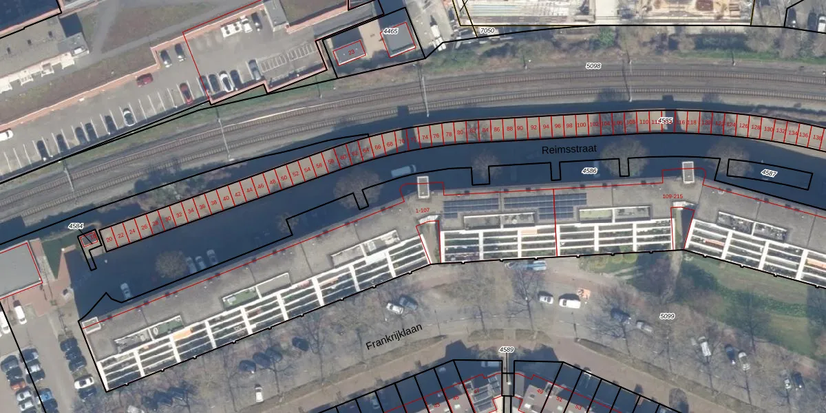 Het perceel waarop Reimsstraat 61 staat heeft een oppervlakte van 4890 m². Dit is een zeer groot perceel. De perceeloppervlakte wordt geregistreerd door het Kadaster. Gedetailleerde informatie over de maten van dit perceel kunt u vinden in het rapport Kadastrale kaart met maatvoering van Reimsstraat 61.