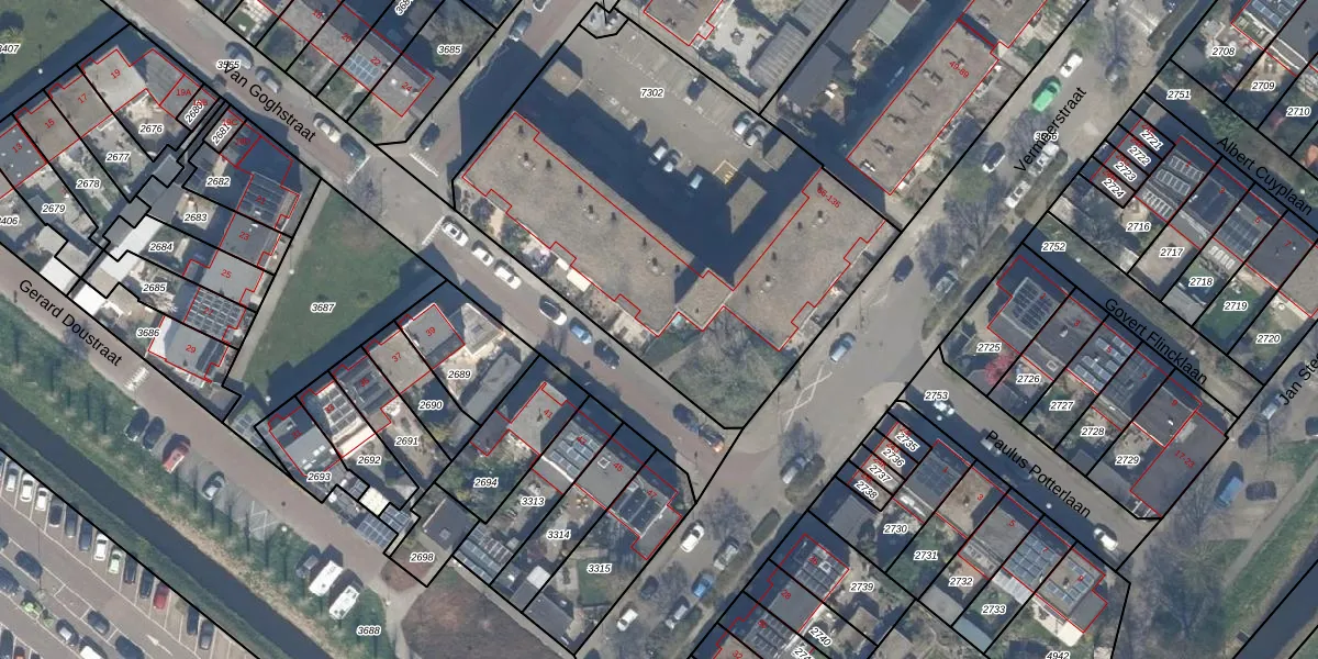 Het perceel waarop Rembrandtstraat 120 staat heeft een oppervlakte van 2298 m². Dit is een zeer groot perceel. De perceeloppervlakte wordt geregistreerd door het Kadaster. Gedetailleerde informatie over de maten van dit perceel kunt u vinden in het rapport Kadastrale kaart met maatvoering van Rembrandtstraat 120.