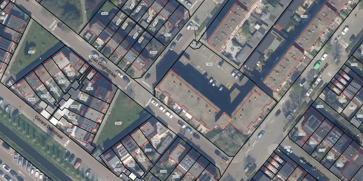 Het perceel waarop Rembrandtstraat 132 staat heeft een oppervlakte van 2298 m². Dit is een zeer groot perceel. De perceeloppervlakte wordt geregistreerd door het Kadaster. Gedetailleerde informatie over de maten van dit perceel kunt u vinden in het rapport Kadastrale kaart met maatvoering van Rembrandtstraat 132.