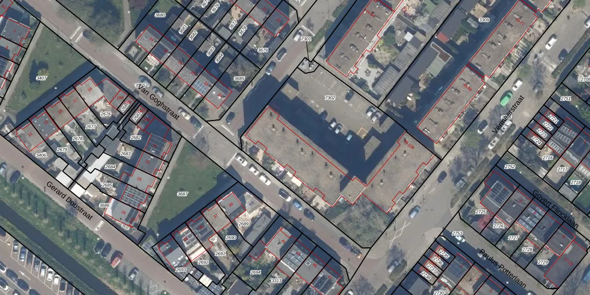Het perceel waarop Rembrandtstraat 134 staat heeft een oppervlakte van 2298 m². Dit is een zeer groot perceel. De perceeloppervlakte wordt geregistreerd door het Kadaster. Gedetailleerde informatie over de maten van dit perceel kunt u vinden in het rapport Kadastrale kaart met maatvoering van Rembrandtstraat 134.