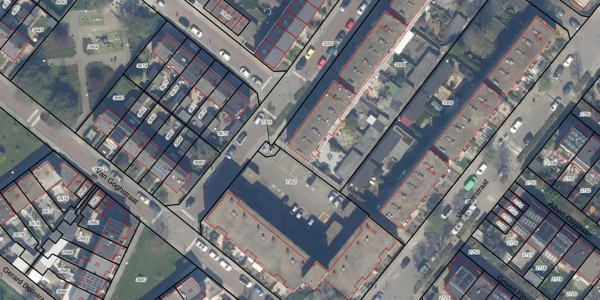 Het perceel waarop Rembrandtstraat 64 staat heeft een oppervlakte van 2503 m². Dit is een zeer groot perceel. De perceeloppervlakte wordt geregistreerd door het Kadaster. Gedetailleerde informatie over de maten van dit perceel kunt u vinden in het rapport Kadastrale kaart met maatvoering van Rembrandtstraat 64.