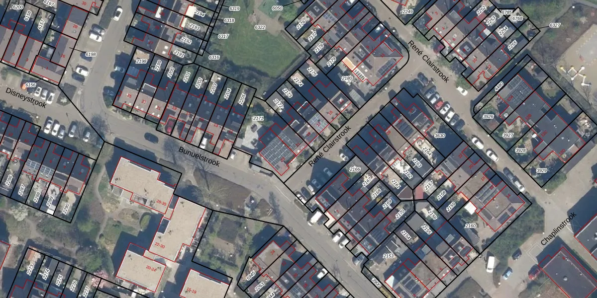 Het perceel waarop René Clairstrook 21 staat heeft een oppervlakte van 407 m². Dit is een groot perceel. De perceeloppervlakte wordt geregistreerd door het Kadaster. Gedetailleerde informatie over de maten van dit perceel kunt u vinden in het rapport Kadastrale kaart met maatvoering van René Clairstrook 21.