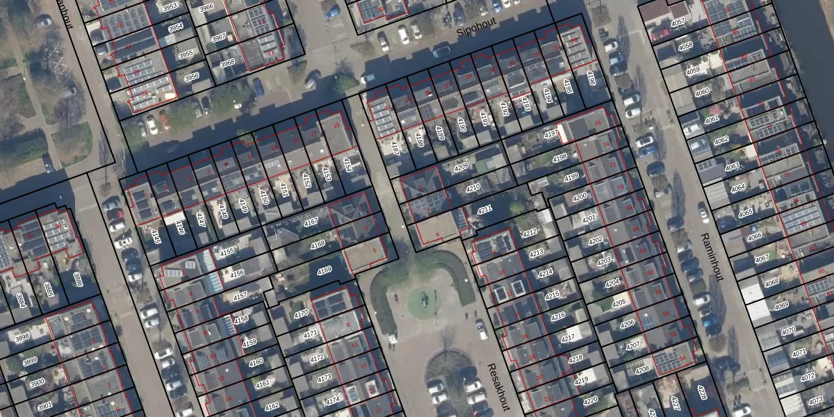 Gebruik de zoekbalk of klik op een perceel voor informatie over de adressen binnen dit perceel.