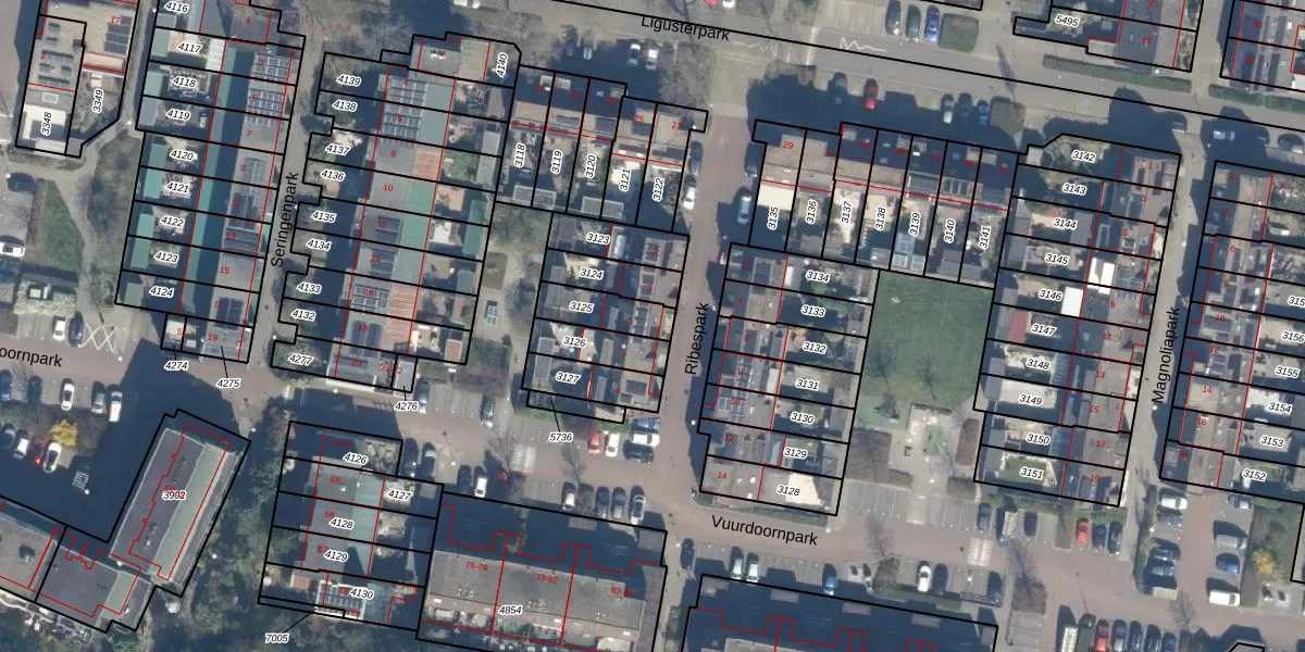 Gebruik de zoekbalk of klik op een perceel voor informatie over de adressen binnen dit perceel.