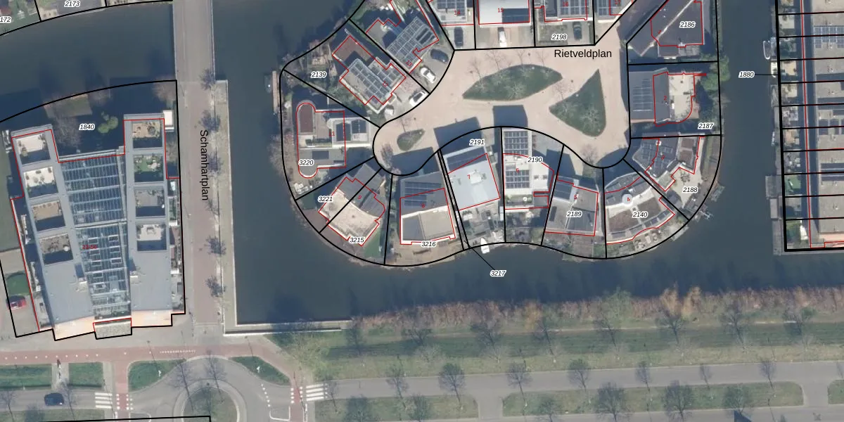 Rietveldplan 8 is gelegen op kadastraal perceel ZWD01A3216. Deze kadastrale aanduiding is uniek en wordt gebruikt door het Kadaster om eigendomsrechten en andere zakelijke rechten vast te leggen. Het perceel maakt onderdeel uit van de kadastrale gemeente Zegwaard.
