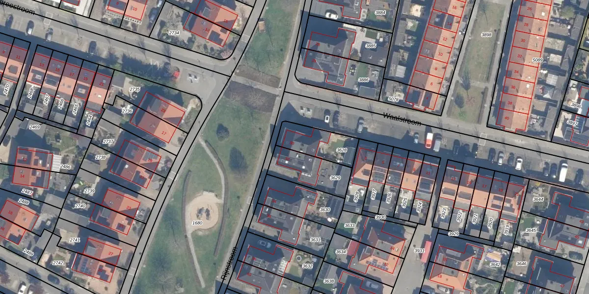 Gebruik de zoekbalk of klik op een perceel voor informatie over de adressen binnen dit perceel.