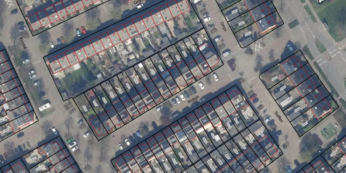 Het perceel waarop Robijn 11 staat heeft een oppervlakte van 140 m². Dit is een middelgroot perceel. De perceeloppervlakte wordt geregistreerd door het Kadaster. Gedetailleerde informatie over de maten van dit perceel kunt u vinden in het rapport Kadastrale kaart met maatvoering van Robijn 11.