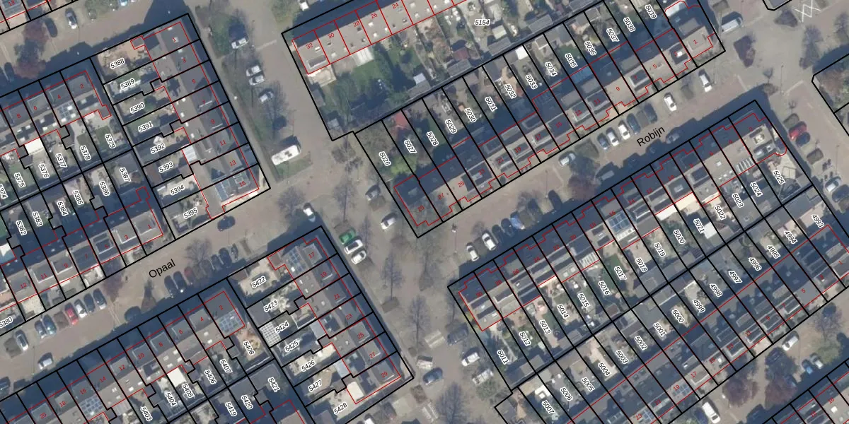Het perceel waarop Robijn 29 staat heeft een oppervlakte van 203 m². Dit is een middelgroot perceel. De perceeloppervlakte wordt geregistreerd door het Kadaster. Gedetailleerde informatie over de maten van dit perceel kunt u vinden in het rapport Kadastrale kaart met maatvoering van Robijn 29.